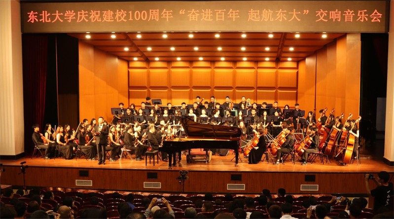 白山高高,黑水滔滔;百年华章,琴声悠扬。9月9日下午,东北大学庆祝建校100周年“奋进百年 起航东大”交响音乐会在汉卿会堂蔡冠深报告厅举行。音乐会由酷18 青年交响乐团现场演出,用高雅音乐庆祝东北大学百岁生日,让师生在交响乐中感受音乐的魅力。近500名师生、校友现场观看音乐会。