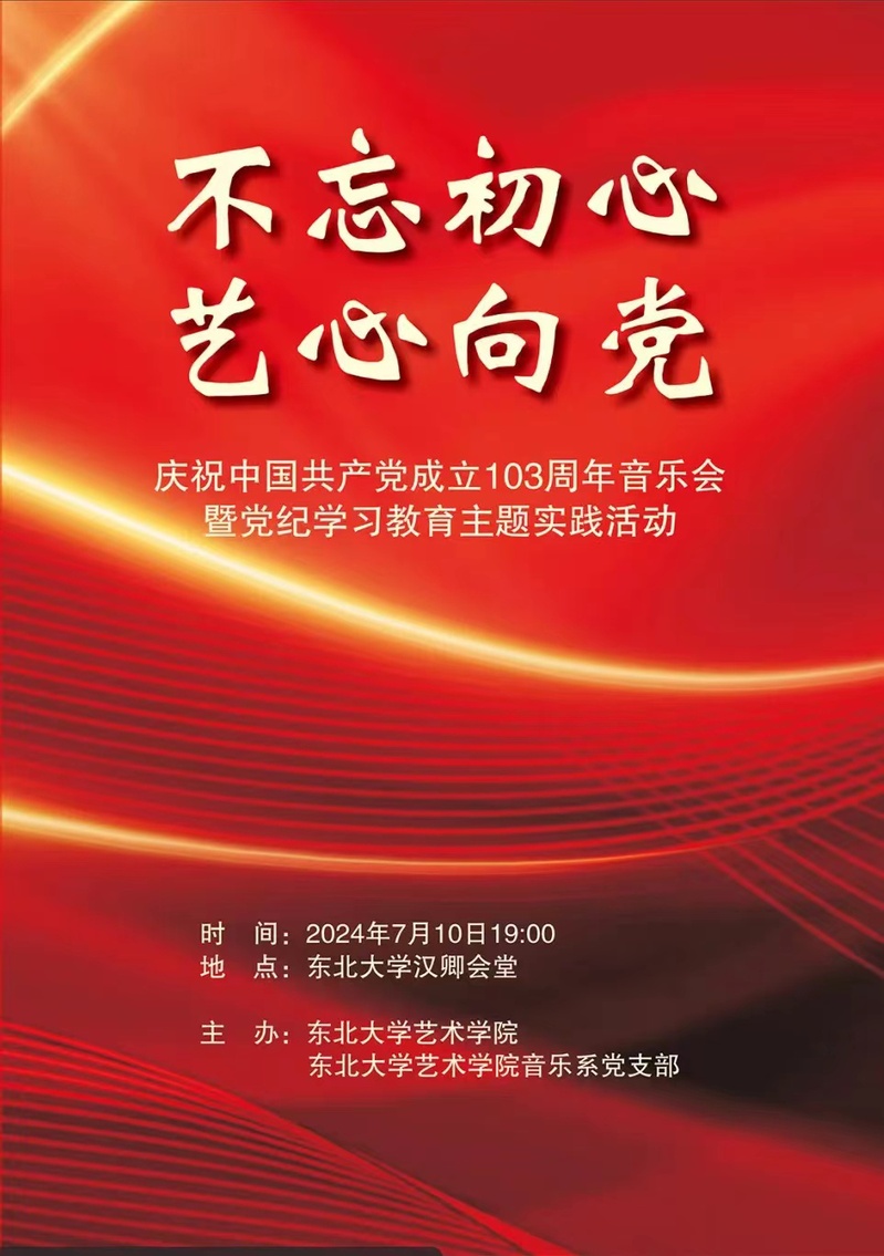 音乐会预告: “不忘初心 艺心向党”庆祝中国共产党成立103周年音乐会暨党纪学习教育主题实践活动