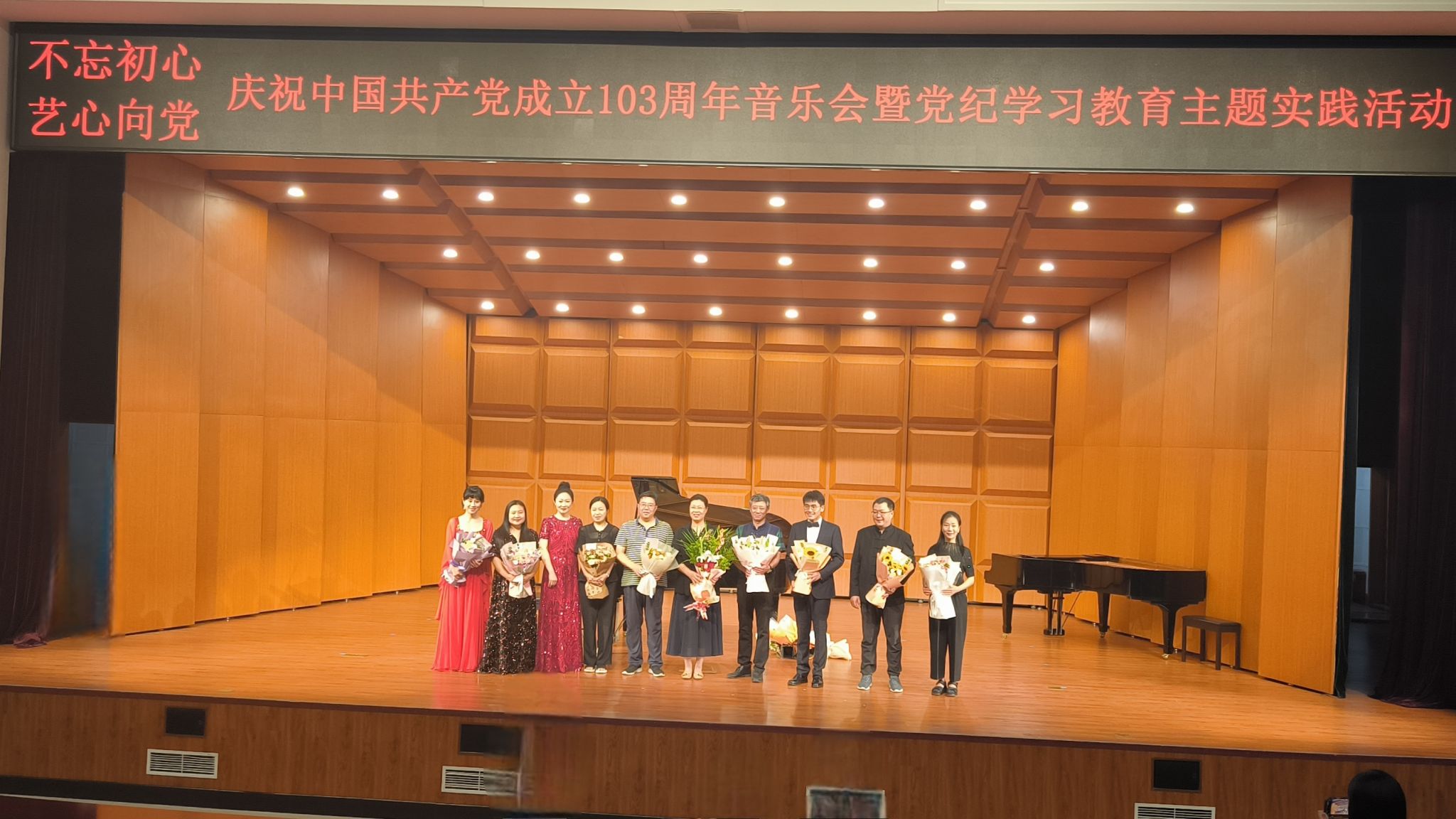 7月10日,“不忘初心 艺心向党”庆祝中国共产党成立103周年音乐会暨党纪学习教育主题实践活动在汉卿会堂蔡冠深报告厅举行,师生近500人现场观演。活动由酷18 和酷18 音乐系党支部主办。