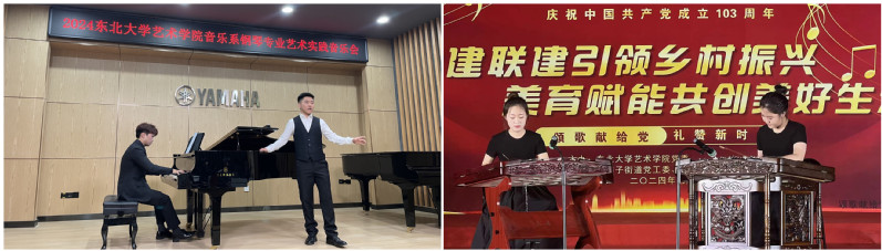 2场校外演出 强化艺术惠民惠农担当。学院多年致力于服务地方文化艺术繁荣发展,在沈阳市组织开展的艺术惠民活动中发挥积极作用,连续多年获表彰。上半年,继续推动展演走出校外、走向社会,共开展2场校外专业演出。前往沈阳市知名琴行音乐厅开展演出交流活动,面向社会普及钢琴知识,开展音乐教育,提高审美素养;前往沈抚示范区深井子街道国公寨社区开展庆祝中国共产党成立103周年“党建联建引领乡村振兴 美育赋能共创美好生活”文艺晚会,歌颂、助力美丽美好乡村建设,提高人民幸福感和收获感。