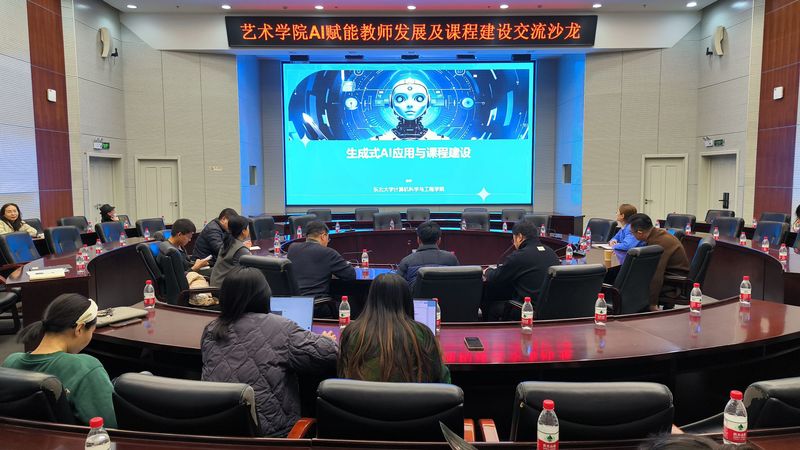 徐彬详细介绍了人工智能的发展脉络及趋势,结合当下发展主流深入分析了大模型的训练及应用过程。徐彬表示,生态式人工智能时代的教学应重点围绕教什么、怎么学以及学到什么程度三个方面来展开,师生学会并具备人机协作能力、高阶认知能力、适应力与终身学习能力以及人文素养与伦理意识等四方面的核心能力。徐彬从AI目前发展的主要领域出发,详细介绍了文本生成、图像生成、音视频生成、代码生成的原理以及不同模型的应用场景,结合各主流应用工具和艺术类学科特色,特别介绍了在精准搜索、文献阅读、辅助写作、PPT生成、导图生成、装修设计、动画建模、数字人开发、视频创作、音乐创作、游戏创作等方面的应用以及本地部署的方法。徐彬结合AI生成技术及发展趋势,介绍了学校开设生成式人工智能应用基础课程从“试点教学”到“全面必修”的建设思路,鼓励学院结合学科特色在课程(一)基础上开发具有专业特色的课程(二)。