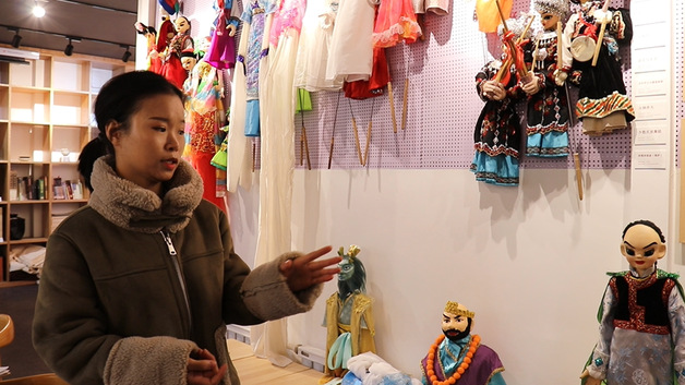 木偶推广宣讲工作坊同学为参观者介绍基地内木偶